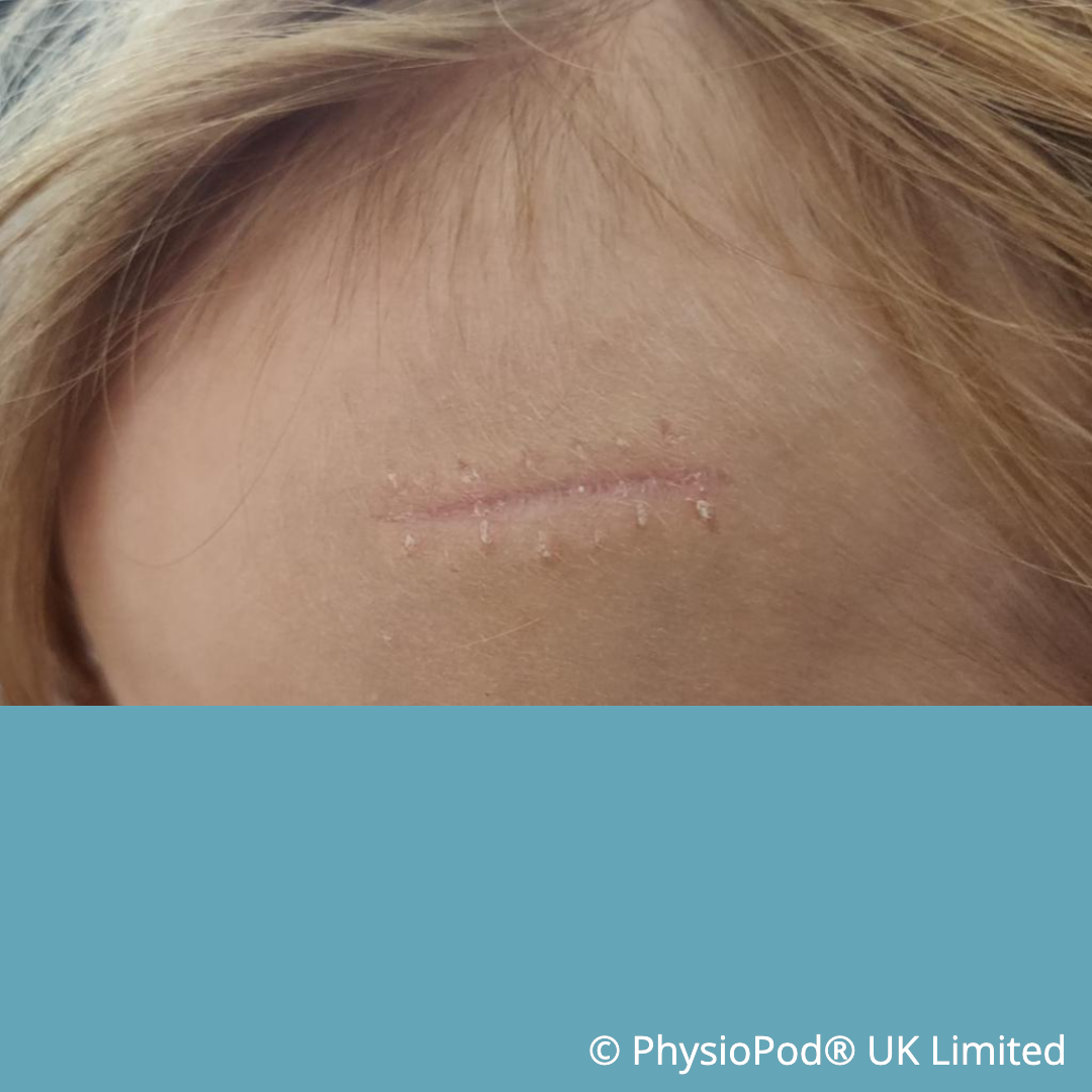 A budding young PhysioPod therapist! Patient self-treats following Practitioner instruction. Under new management the scar continues to make excellent progress.